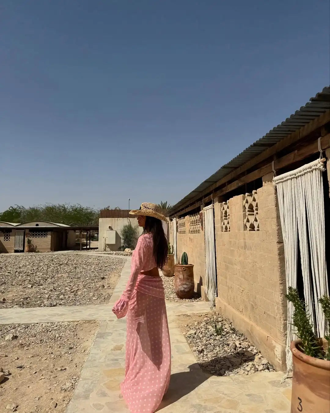 The Marisela is a flirty and feminine two-piece set crafted in airy chiffon with playful polka dots. Featuring a backless long-sleeve crop top with chic tie-up details and a sheer bodycon skirt, this set brings effortless elegance to your beachside looks. Its lightweight, see-through design adds a sultry yet stylish finish that’s perfect for summer vibes.
