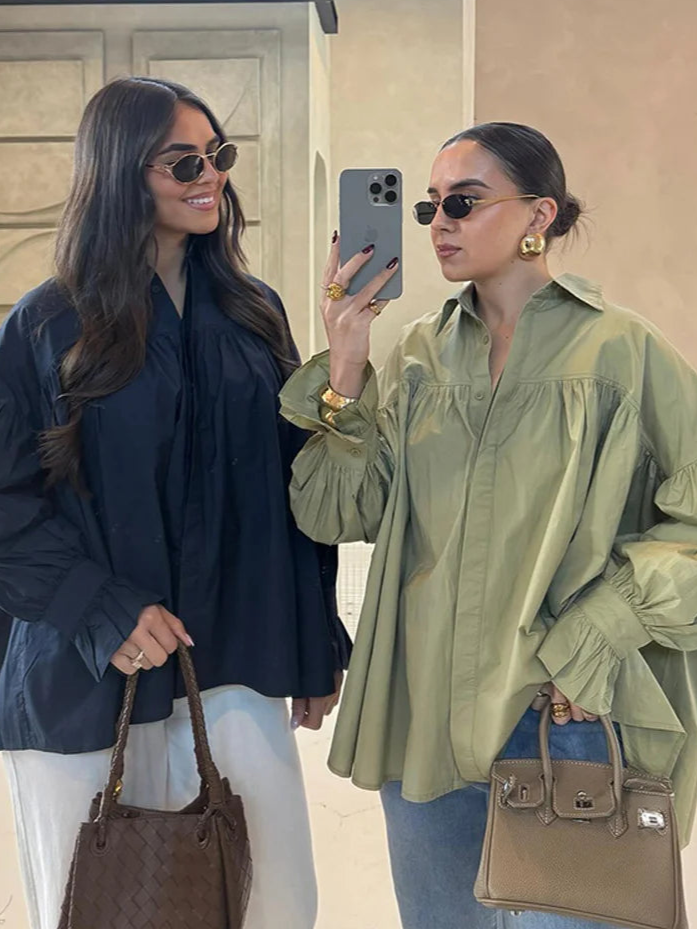 The Sage Blouse is a perfect blend of elegance and ease. Featuring airy lantern sleeves, a turn-down collar, and soft pleated detailing, this blouse offers a relaxed yet polished silhouette. Its breezy fabric and loose fit make it ideal for spring and summer, pairing beautifully with tailored trousers, jeans, or skirts for an effortlessly chic look.