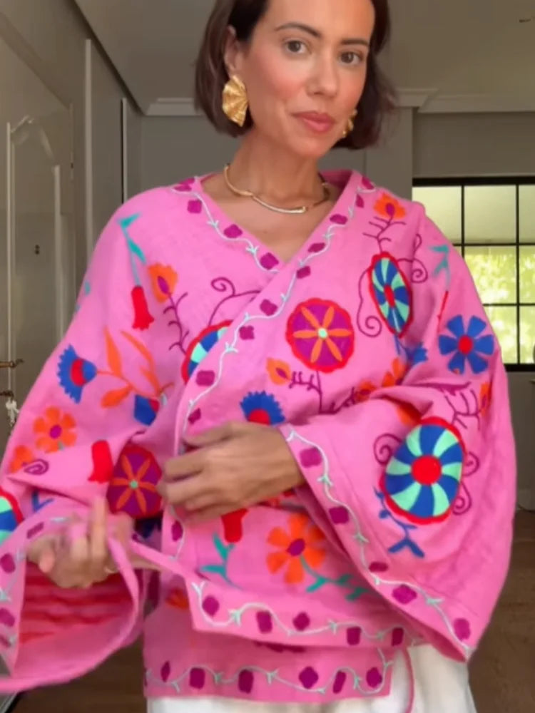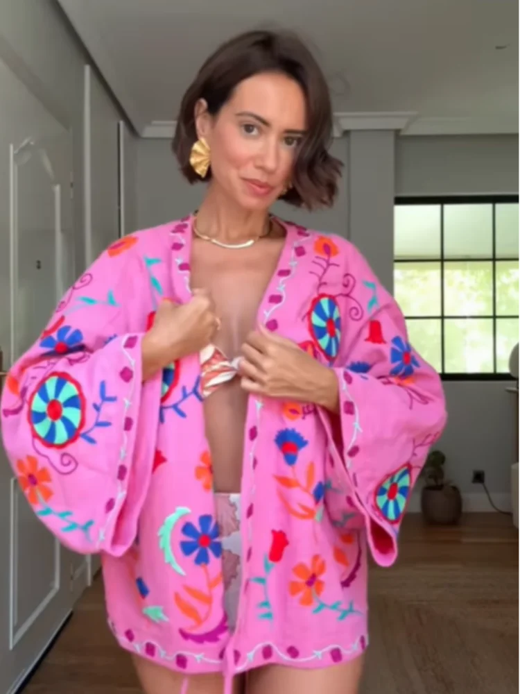 The Aria is a feminine embroidered jacket that blends playful charm with everyday elegance. Featuring delicate embroidery, a flattering V-neckline, and a chic lace-up front, this short coat is the perfect layering piece for transitional weather. The long sleeves and tailored fit make it versatile for pairing with jeans, skirts, or dresses, giving you endless styling options.