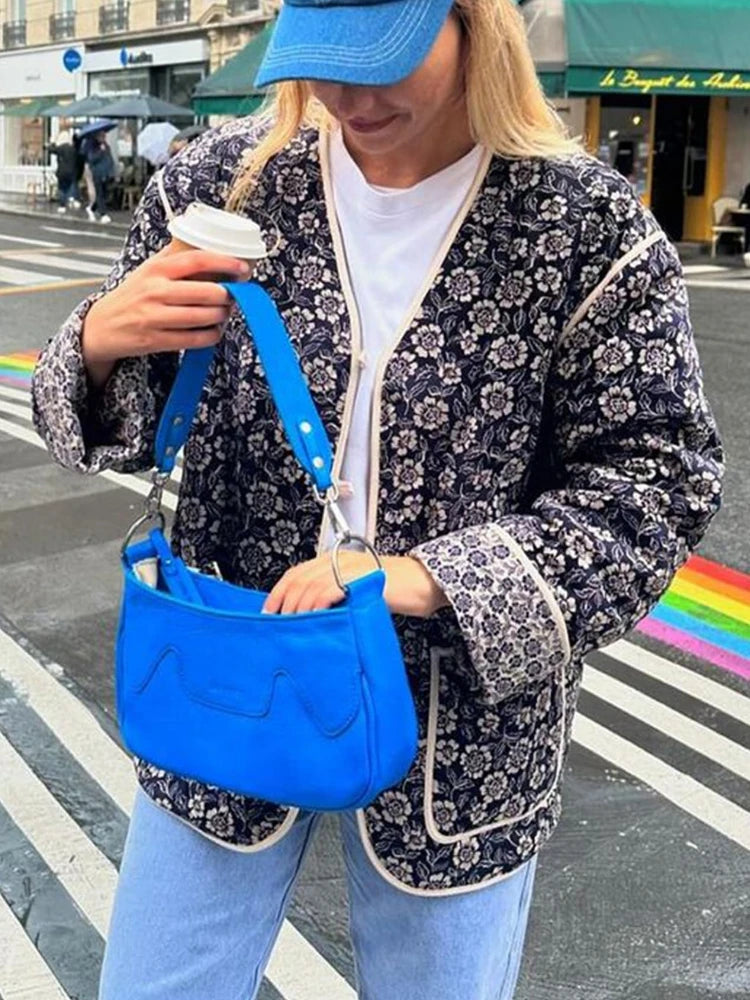 Meet the Esme Reversible Floral Coat, the perfect blend of vintage charm and modern versatility. This loose-fit overcoat features a single-breasted front, patch pockets, and a chic V-neckline, but its star feature is its reversible design — giving you two looks in one. One side shows off a timeless solid tone for a sophisticated day look, while the other reveals a delicate floral print for when you want to add a romantic touch to your outfit.
